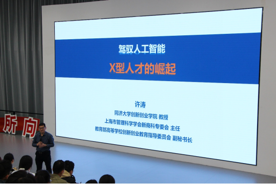 2025年10月19日上午,学校“康创大讲堂-创新创业专题讲座”第三期在学部楼10-110阶梯教室如期举行。教育部高等学校创新创业教育指导委员会副秘书长、同济大学创新创业学院许涛教授受邀主讲,以“驾驭人工智能:X型人才的崛起”为主题,为现场百余名师生带来一场兼具理论深度与实践指导的学术分享。活动由教务处田双喜教授主持,校内各学院师生踊跃到场参与。