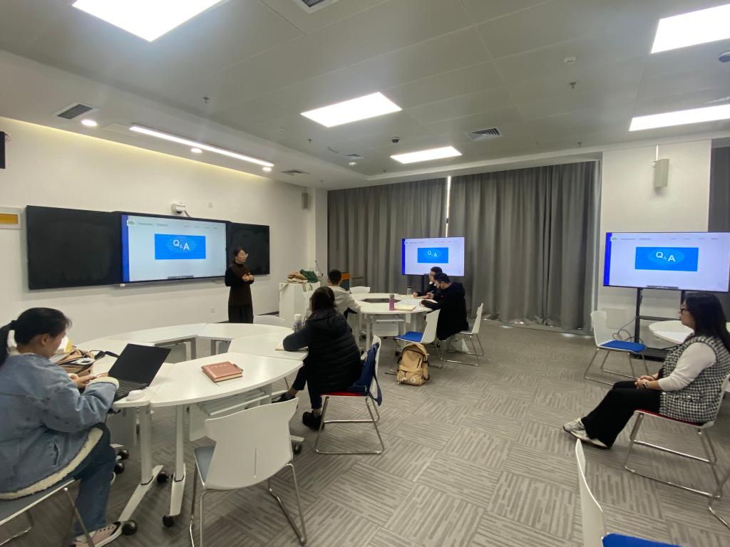 2025年12月1日,教学培训组混合式教学组第二期活动在学部楼11-104成功举行。王贞老师作为混合式教学组的代表以“AI+混合式教学:课程建设路径与智慧教学竞赛实践”为主题,与参与活动的老师们共同探讨了人工智能时代下课程教学的系统性重构与创新实践。